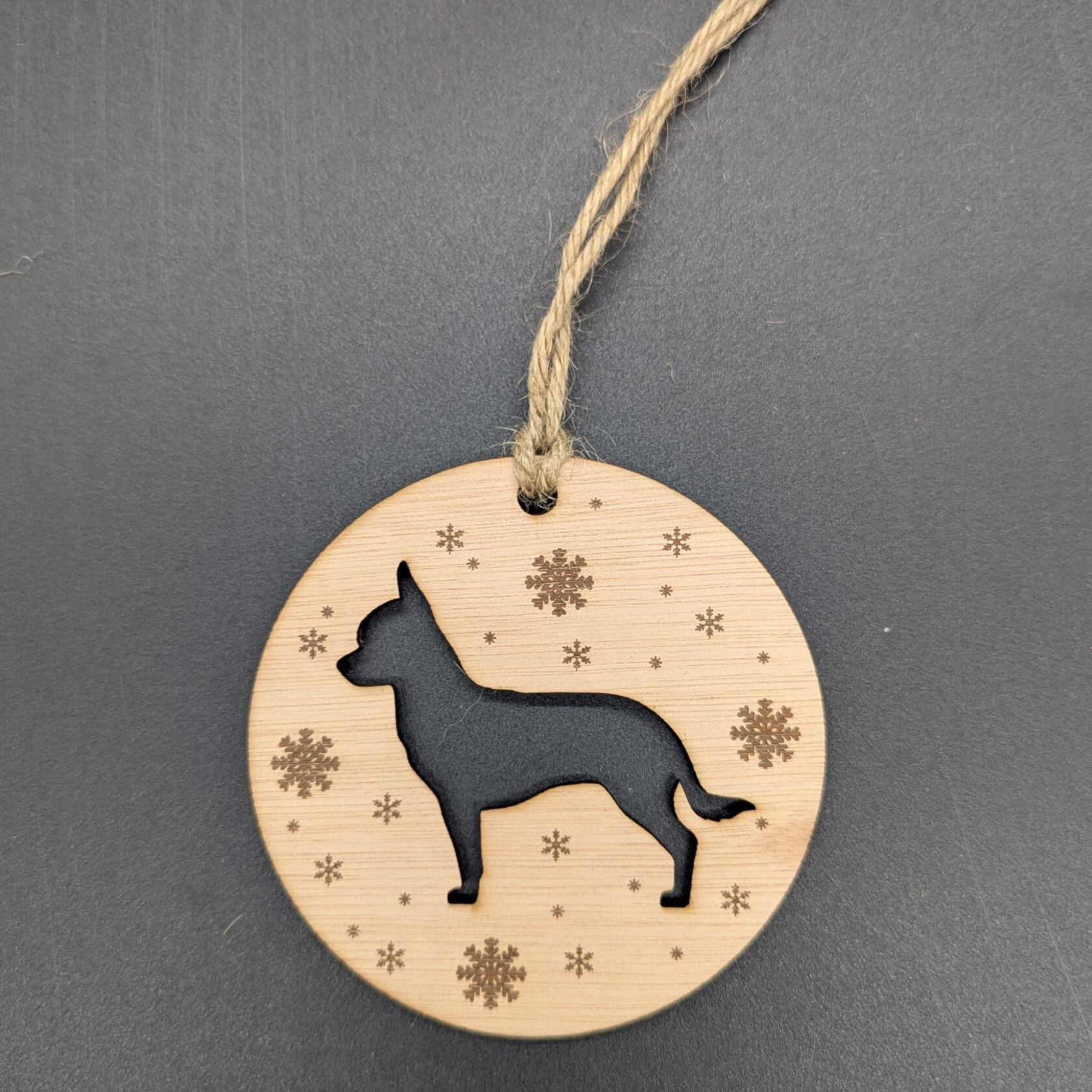 Kerstbal hout enkel "honden met een C"