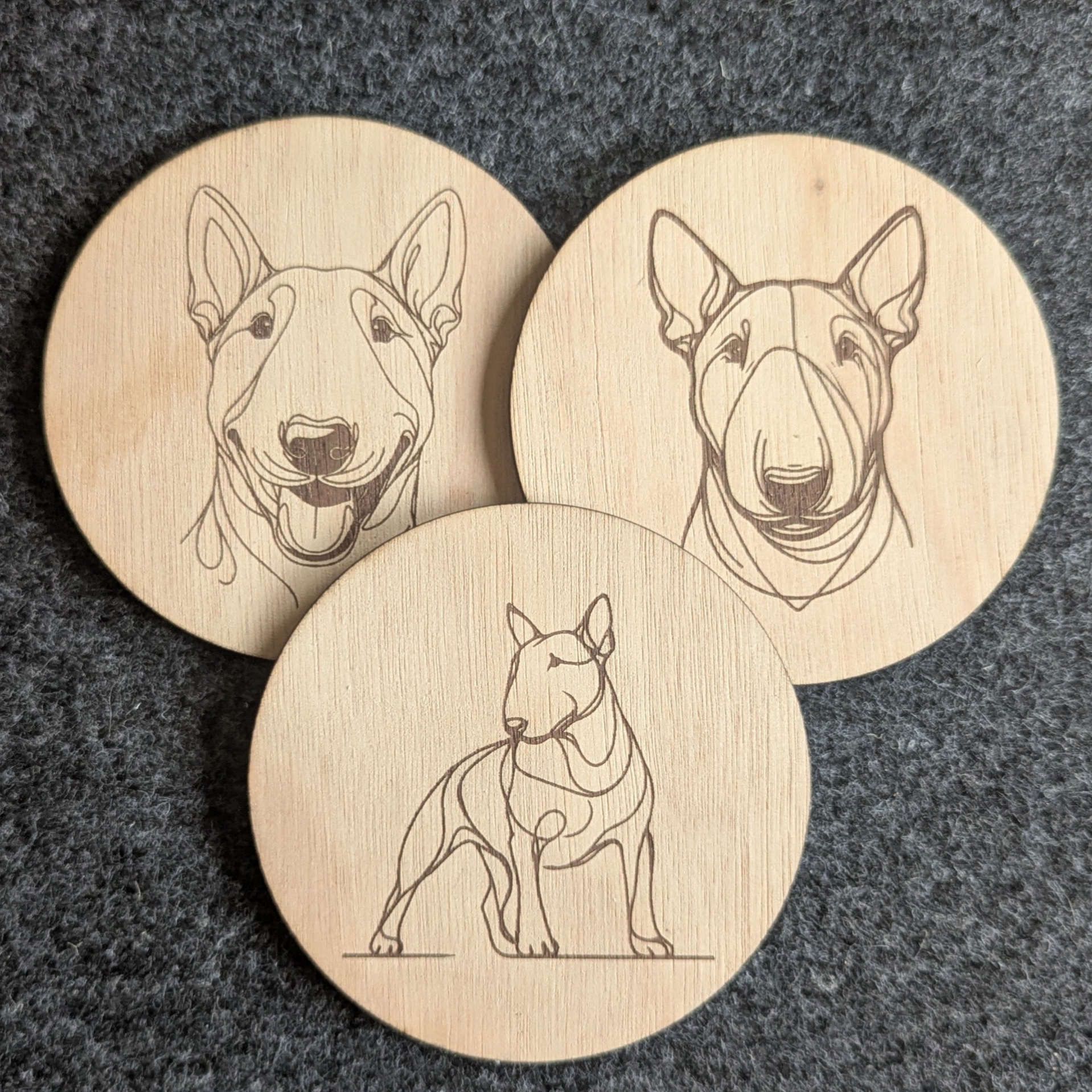 Super leuke set van 6 onderzetters met verschillende afbeeldingen van de Bull terrier